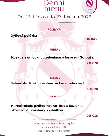 Polední nabídka je k dispozici od 12 hodin do 15 hodin.