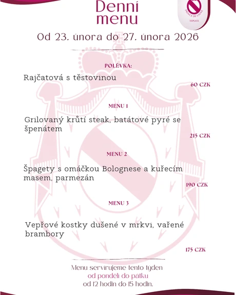RESTAURACE JE OTEVŘENA od PONDĚLÍ do PÁTKU.